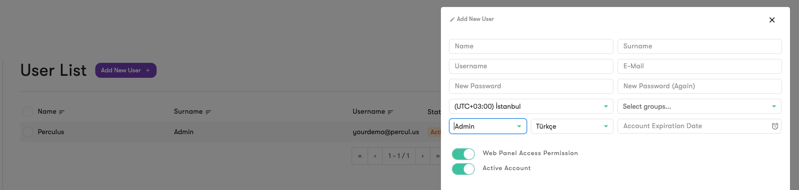1. **After logging in, click on the ‘New User’ button in the ‘Users’ section to open the new user creation screen.**<br>